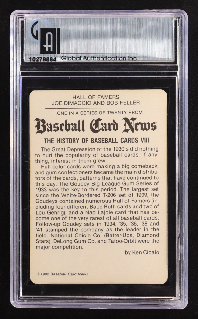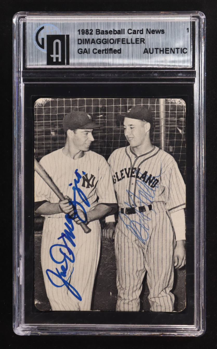 Joe DiMaggio & Bob Feller Signed 1982 Baseball Card News #8 (GAI)