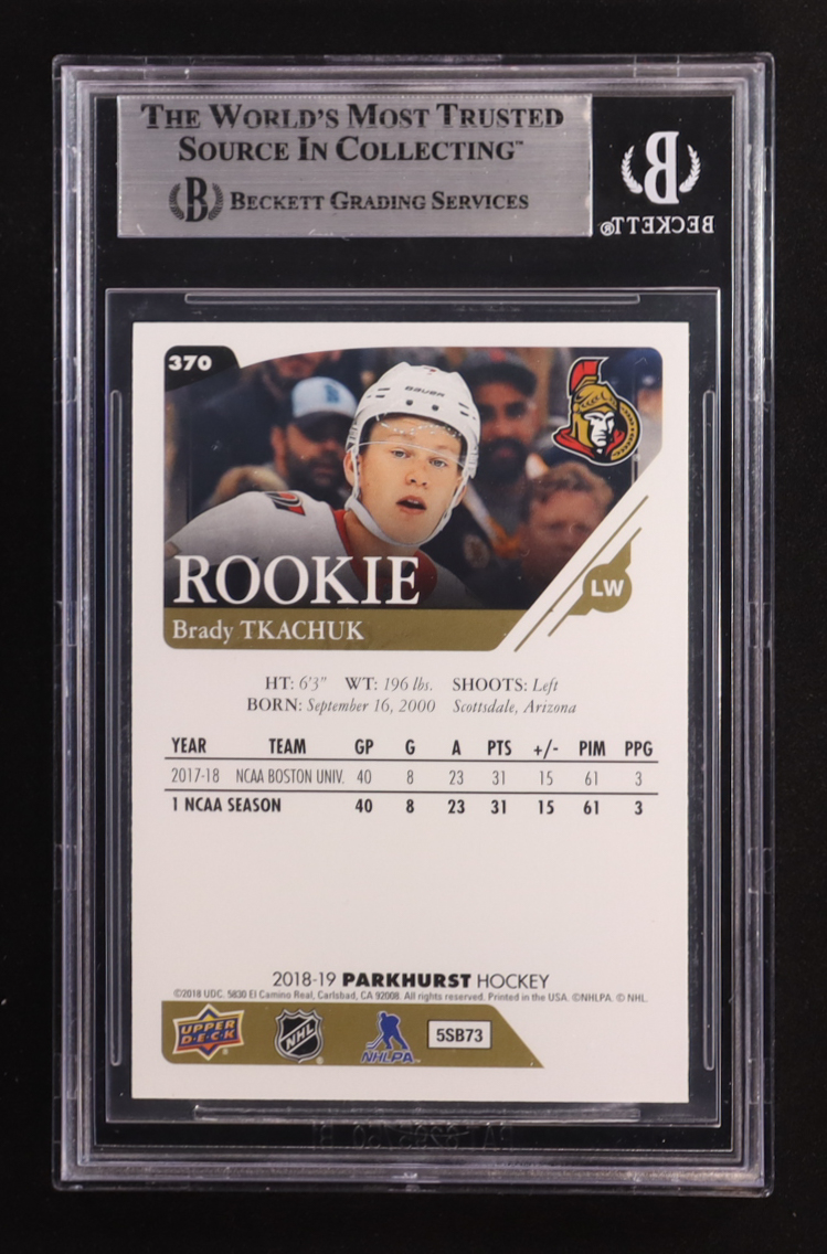 Brady Tkachuk Signed 2018-19 Parkhurst #370 RC (BGS)