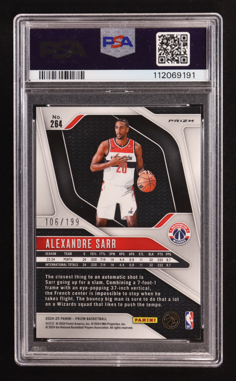 Alexandre Sarr 2024-25 Panini Prizm Prizms Blue #264 #106/199 RC (PSA 9)