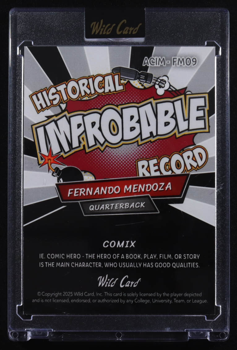Fernando Mendoza 2025 Wild Card Comix Improbable B&W Stealth #ACIMFM09 #4/5 RC