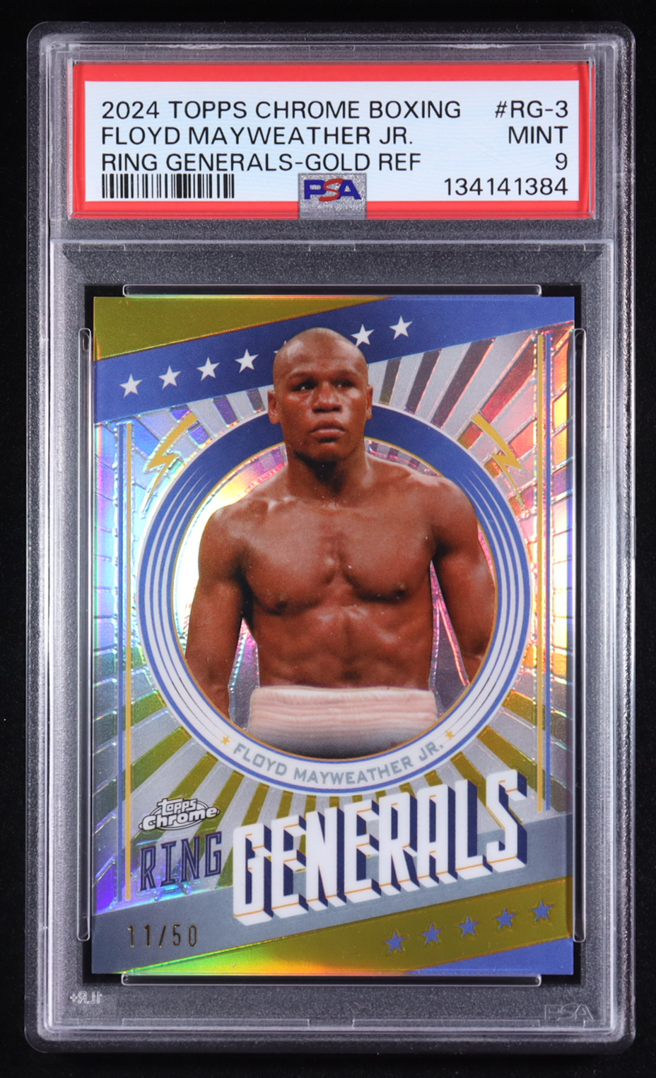 Floyd Mayweather 2024 Topps Chrome Boxing Ring Generals Gold Refractor #RG-3 #11/50 (PSA 9)