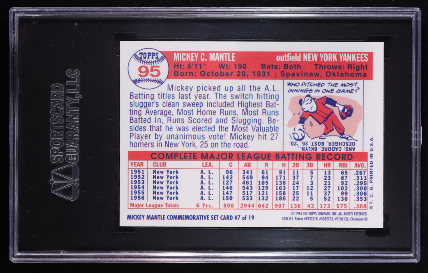 Mickey Mantle 1996 Topps Mantle Finest Refractors #7 1957 Topps (SGC 9)