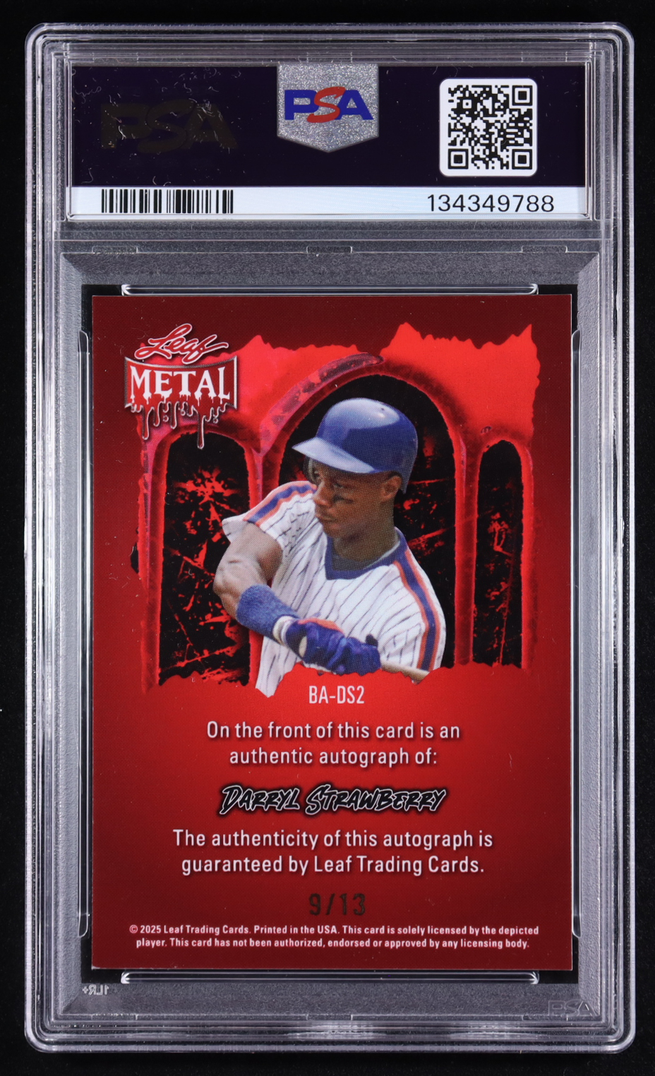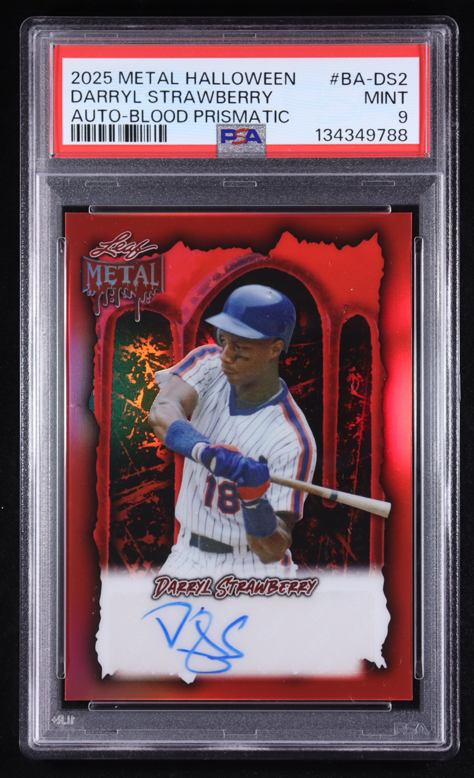Darryl Strawberry 2025 Leaf Metal Halloween Blood Prismatic Auto #BA-DS2 #9/13 (PSA 9)