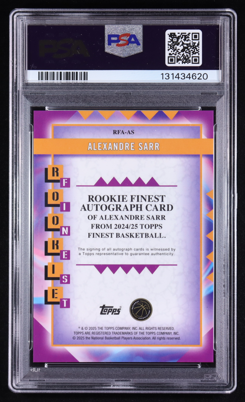 Alexandre Sarr 2024 Topps Finest Rookie Autograph #RFA-AS RC (PSA 9)