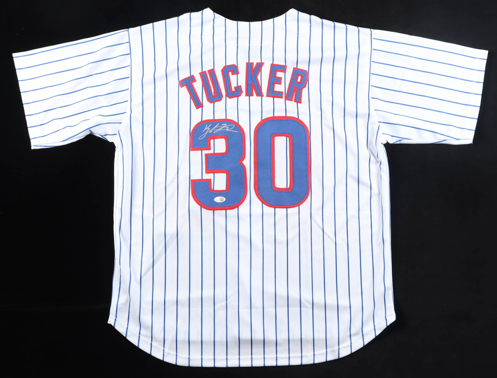 Custom jersey. Everything is sewn on, size XL. Hand-signed by Kyle Tucker.