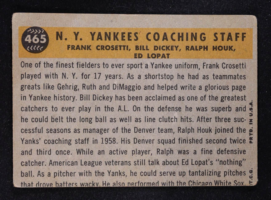 Bill Dickey / Ralph Houk / Frank Crosetti / Ed Lopat 1960 Topps #465 Yankees Coaches