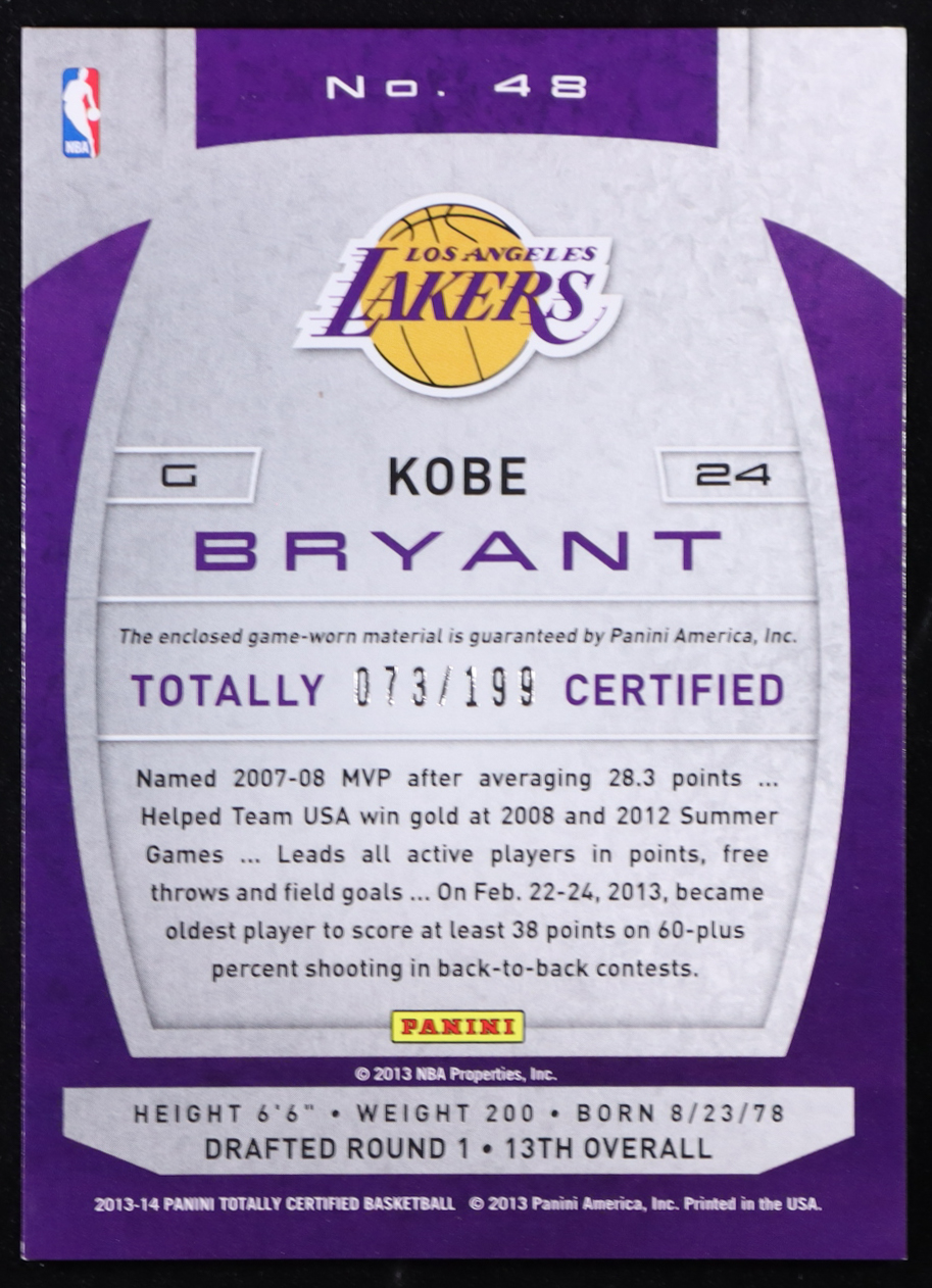 Kobe Bryant 2013-14 Totally Certified Materials Red #48 #073/199