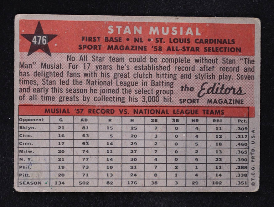 Stan Musial 1958 Topps #476 AS TP