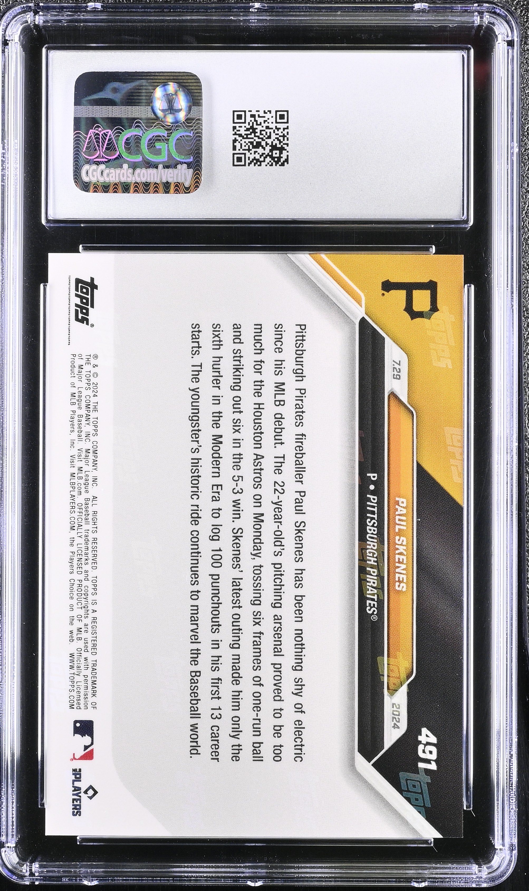 Paul Skenes 2024 Topps Now #491 RC (CGC 10)
