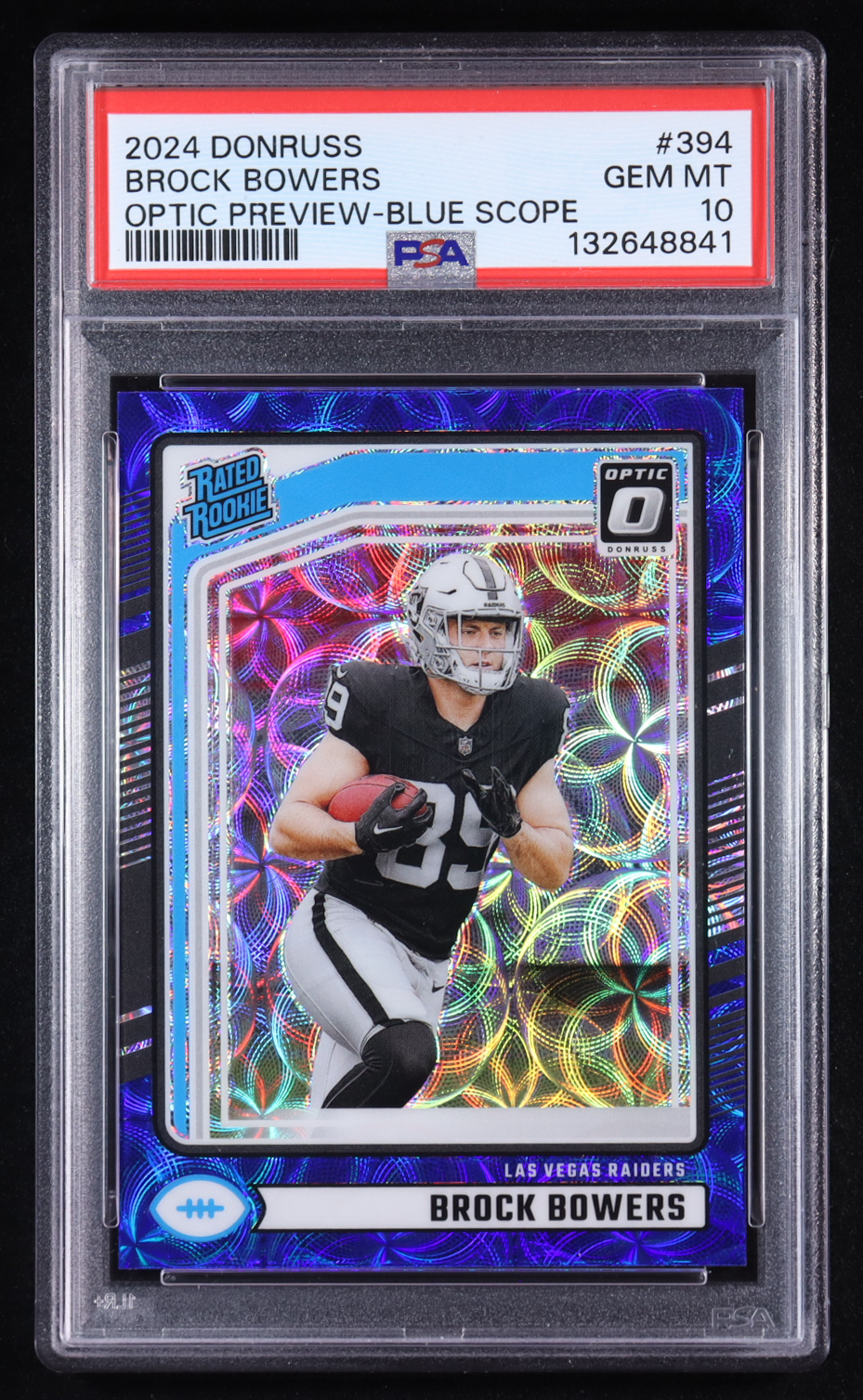 Brock Bowers 2024 Donruss Optic Rated Rookies Preview Blue Scope #394 RR RC (PSA 10)