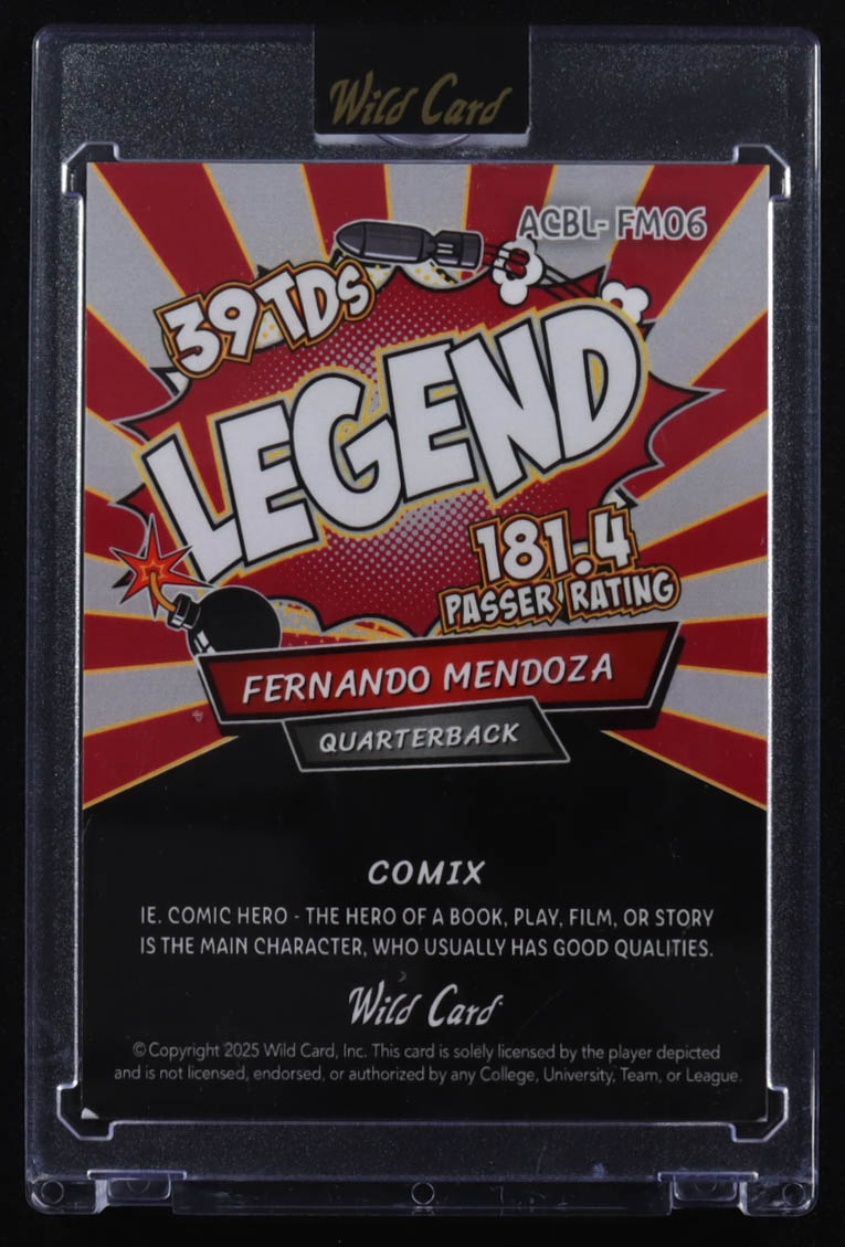 Fernando Mendoza 2025 Wild Card Comix Legend Red Cross Hatch #ACBLFM06 #3/4 RC