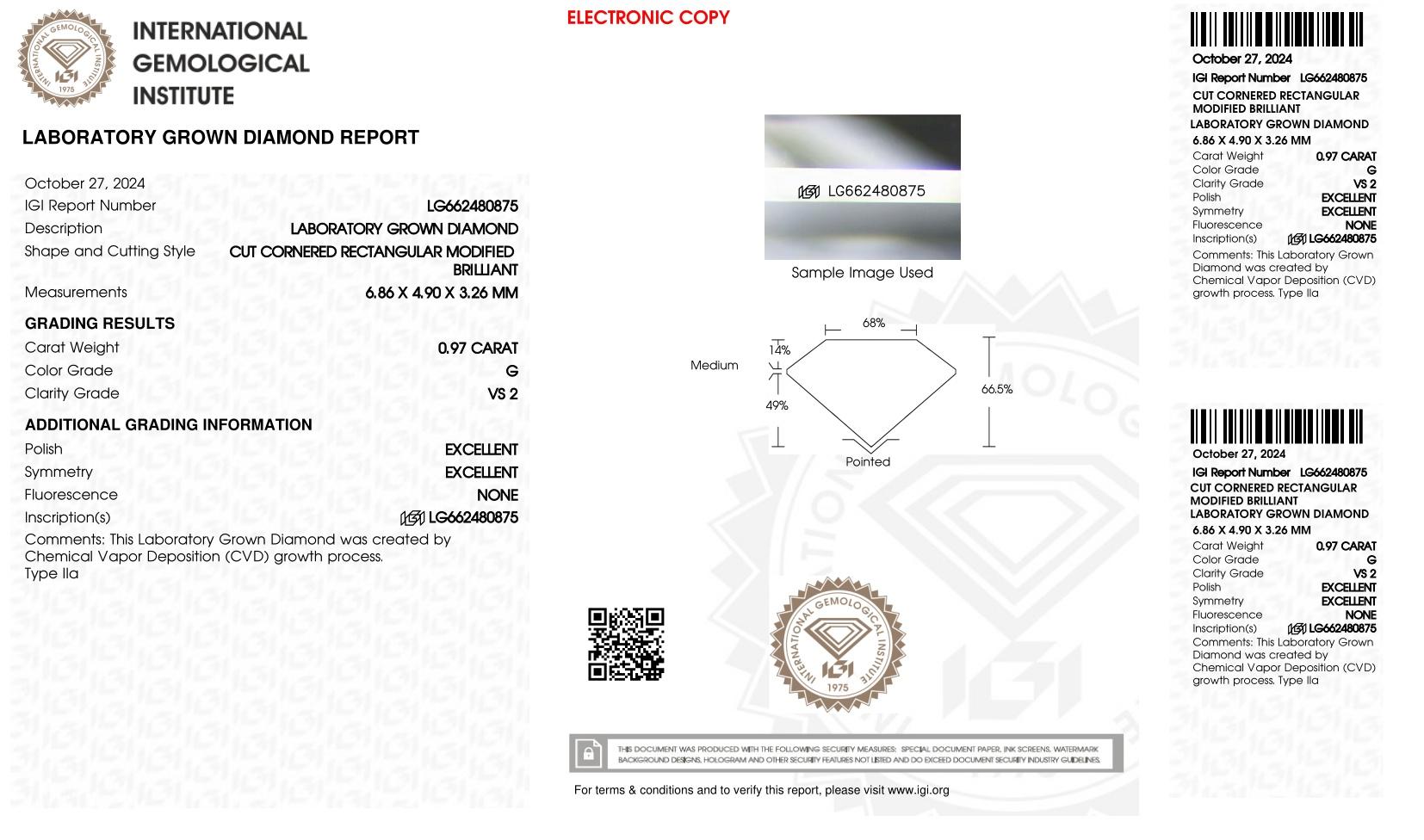 This piece includes paperwork from the International Gemological Institute (IGI).