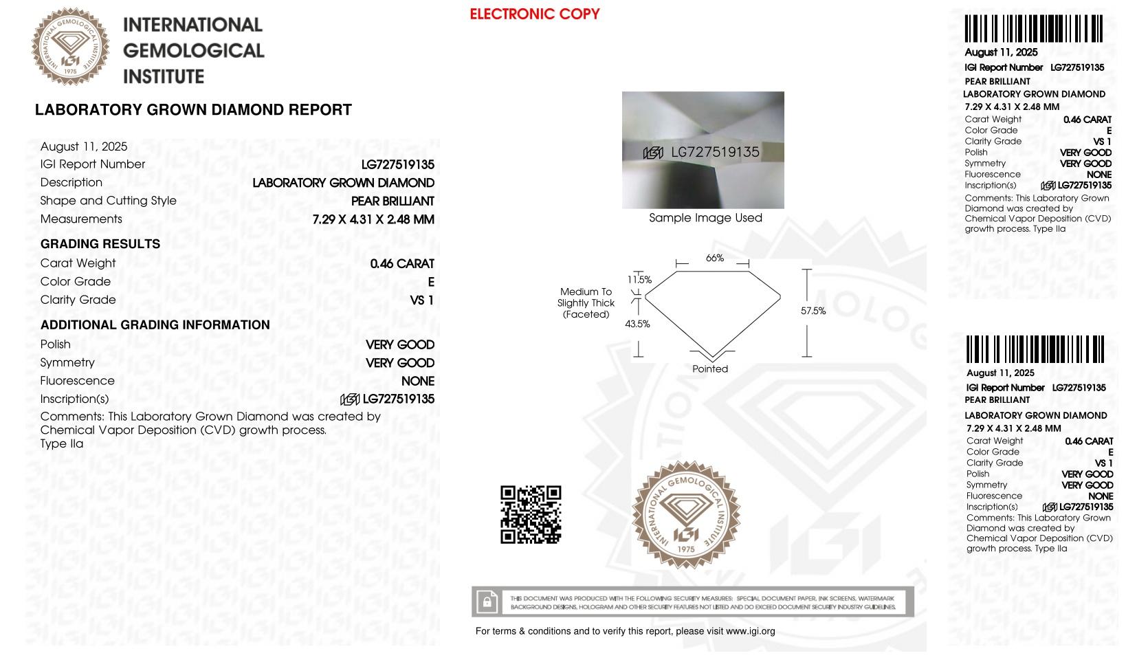 This piece includes paperwork from the International Gemological Institute (IGI).