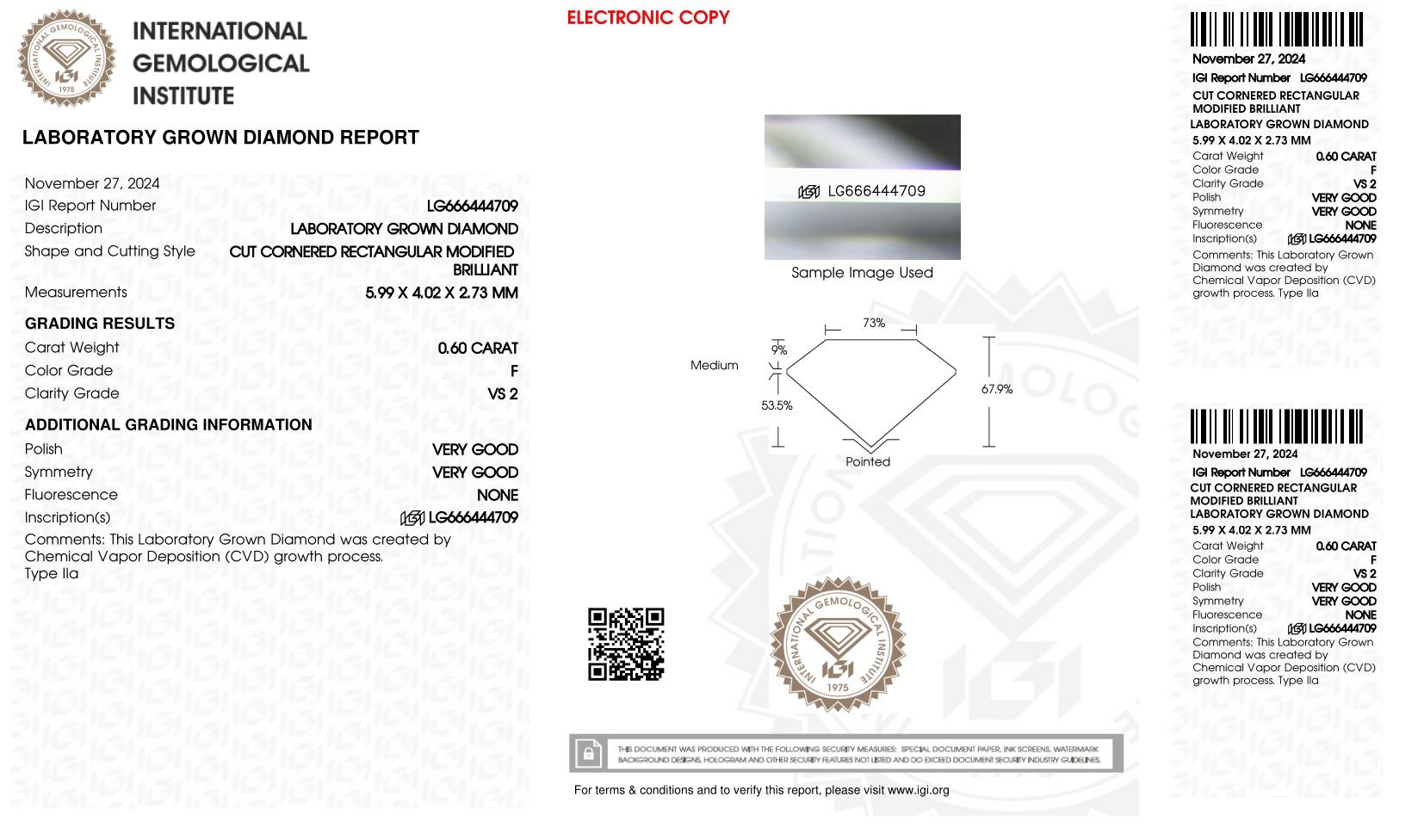 This piece includes paperwork from the International Gemological Institute (IGI).