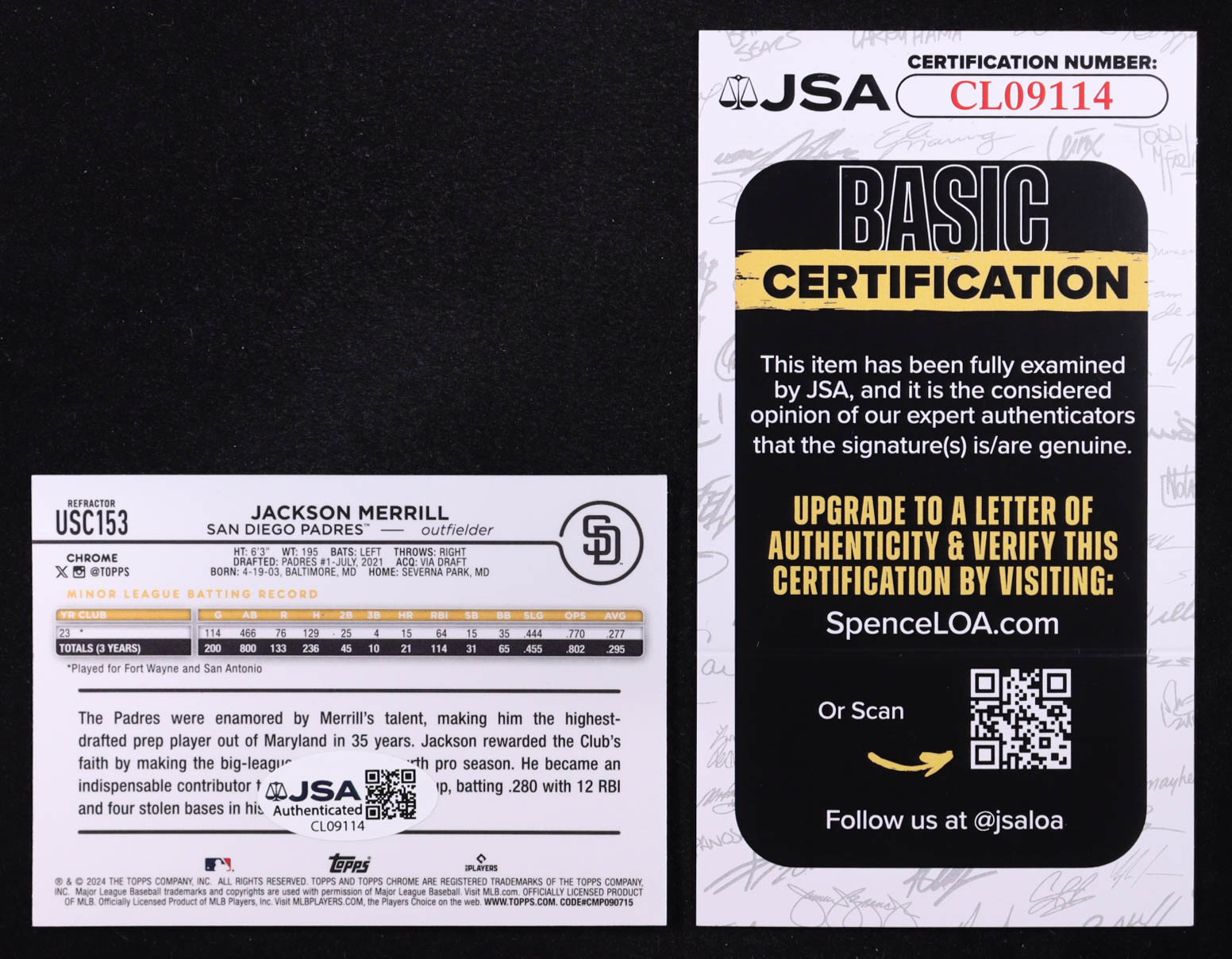 Jackson Merrill Signed 2024 Topps Chrome Update Refractors #USC153 RC