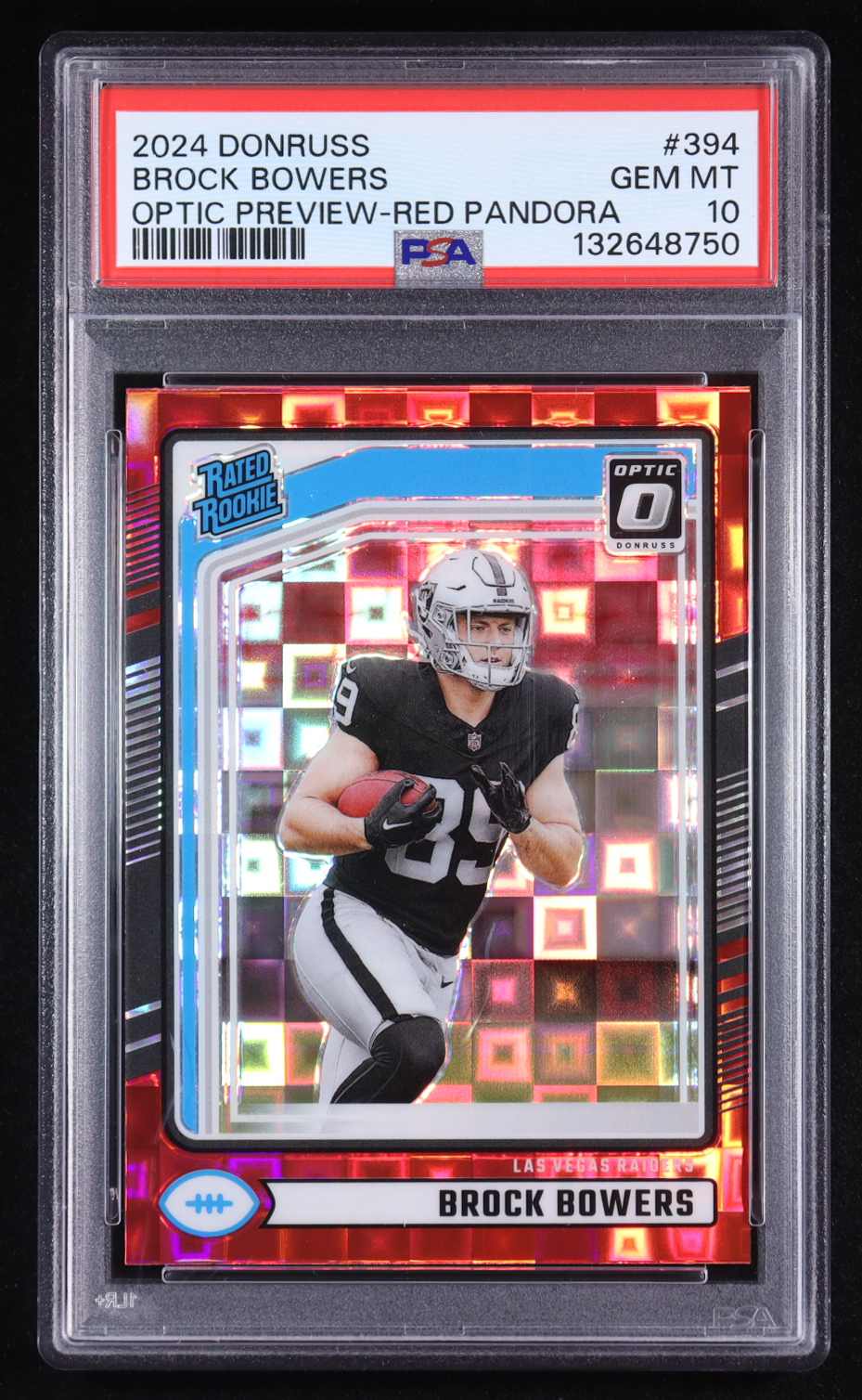 Brock Bowers 2024 Donruss Optic Rated Rookies Preview Red Pandora #394 RR RC (PSA 10)