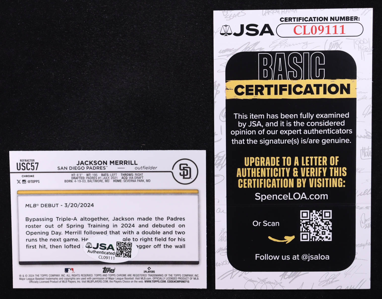 Jackson Merrill Signed 2024 Topps Chrome Update Refractors #USC57 RC