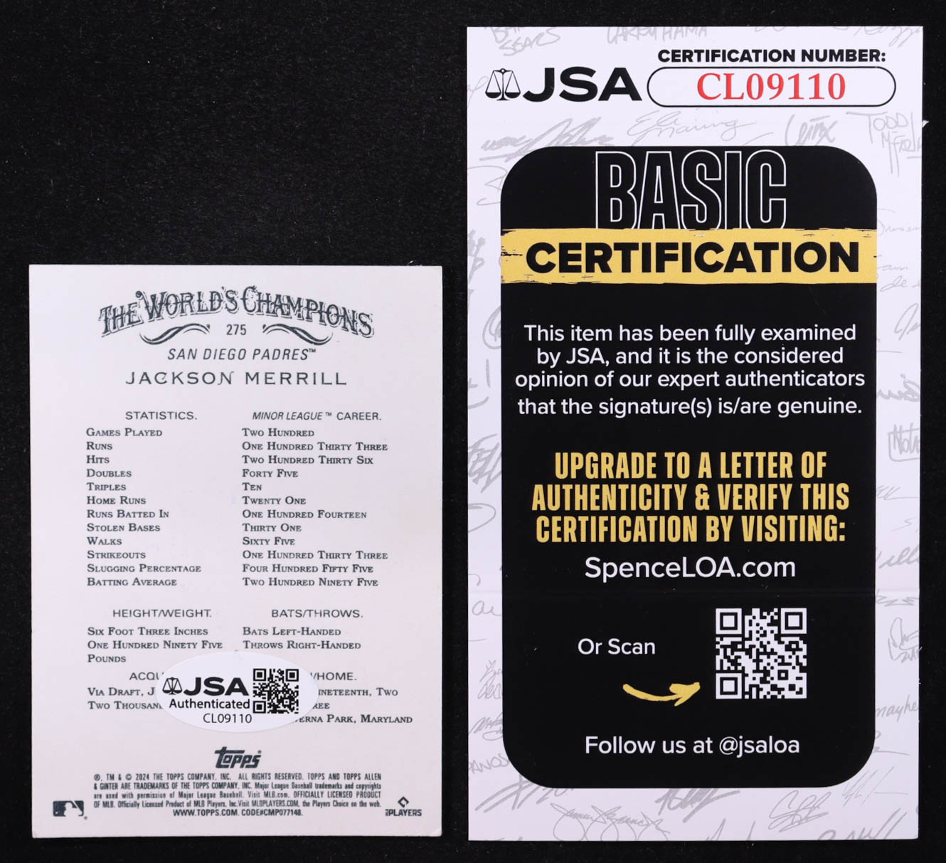 Jackson Merrill Signed 2024 Topps Allen and Ginter #275 RC
