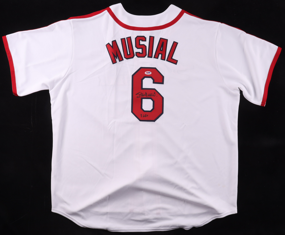 Stan Musial Signed Cardinals Majestic Authentic Jersey Inscribed "3630" (PSA)