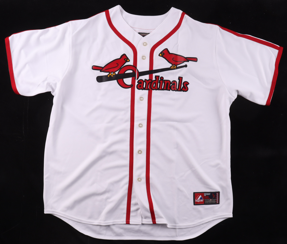 Majestic Cooperstown Collection jersey. Everything is sewn on, size 2XL. Hand-signed by Stan Musial (D. 2013, St. Louis Cardinals, HOF).