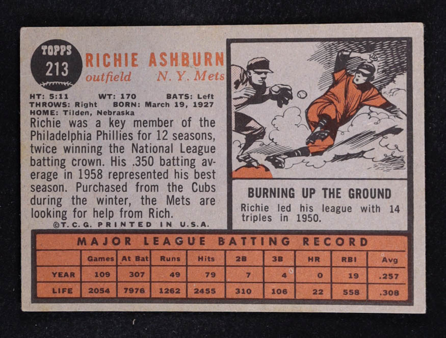 Richie Ashburn 1962 Topps #213