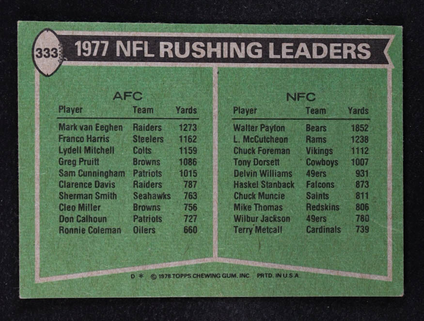 Walter Payton / Mark VanEeghen 1978 Topps #333 LL