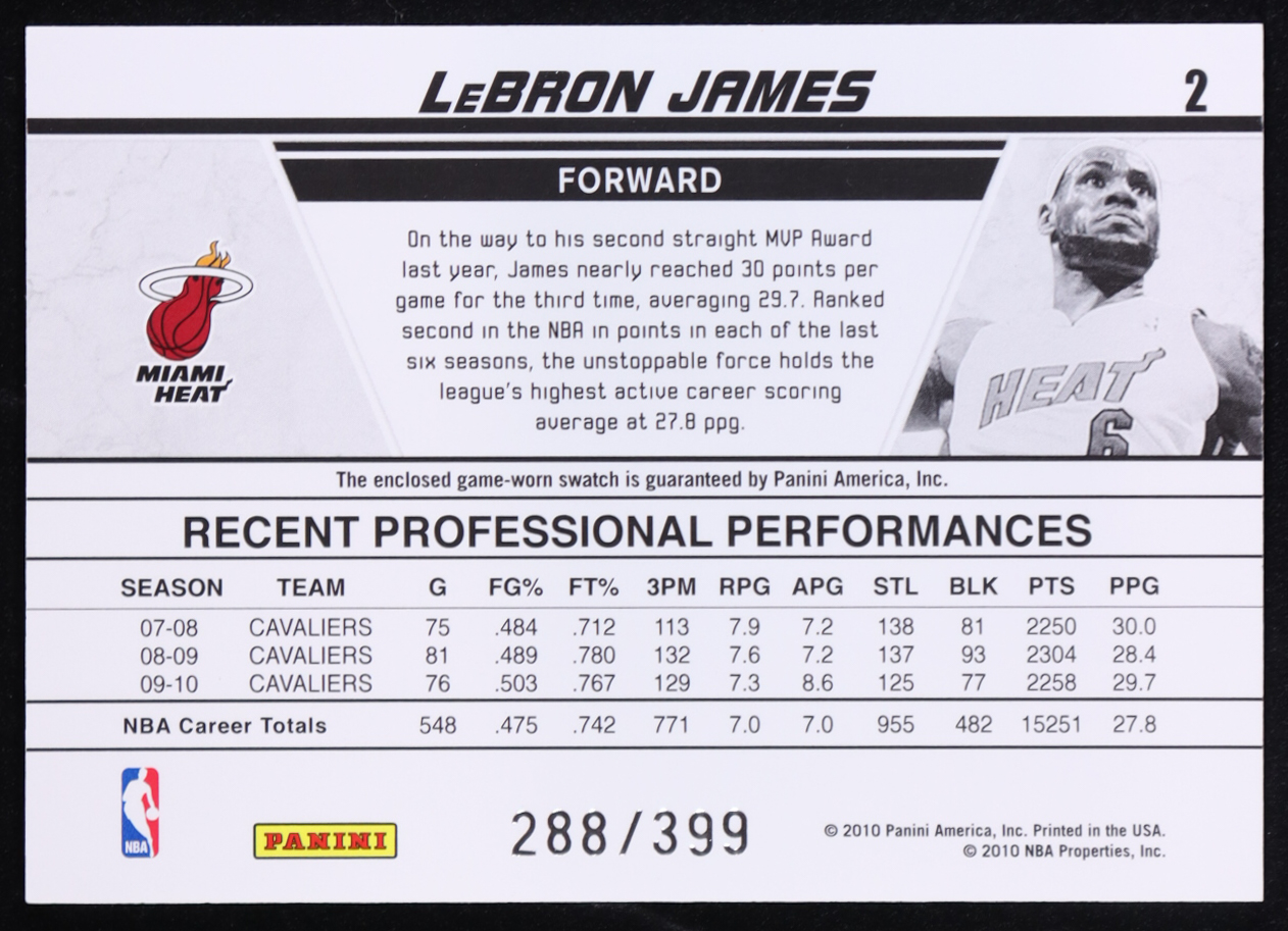 LeBron James 2010-11 Donruss Production Line Materials #2 #288/399
