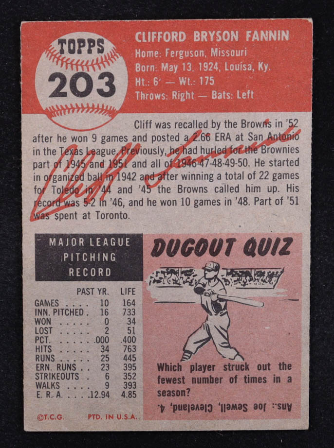 Cliff Fannin 1953 Topps #203