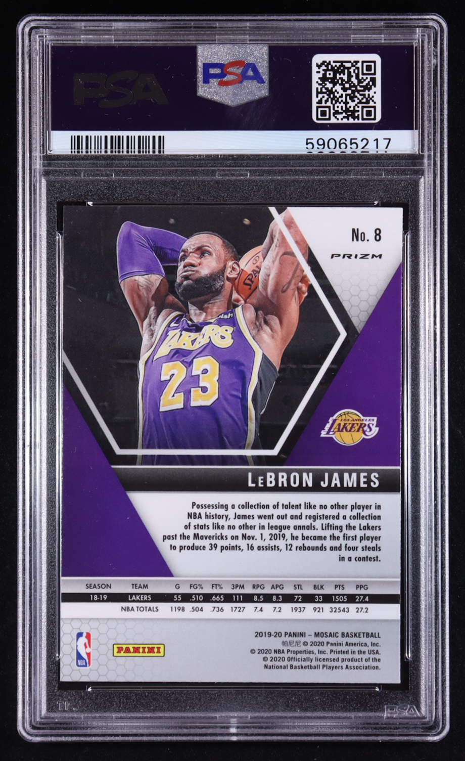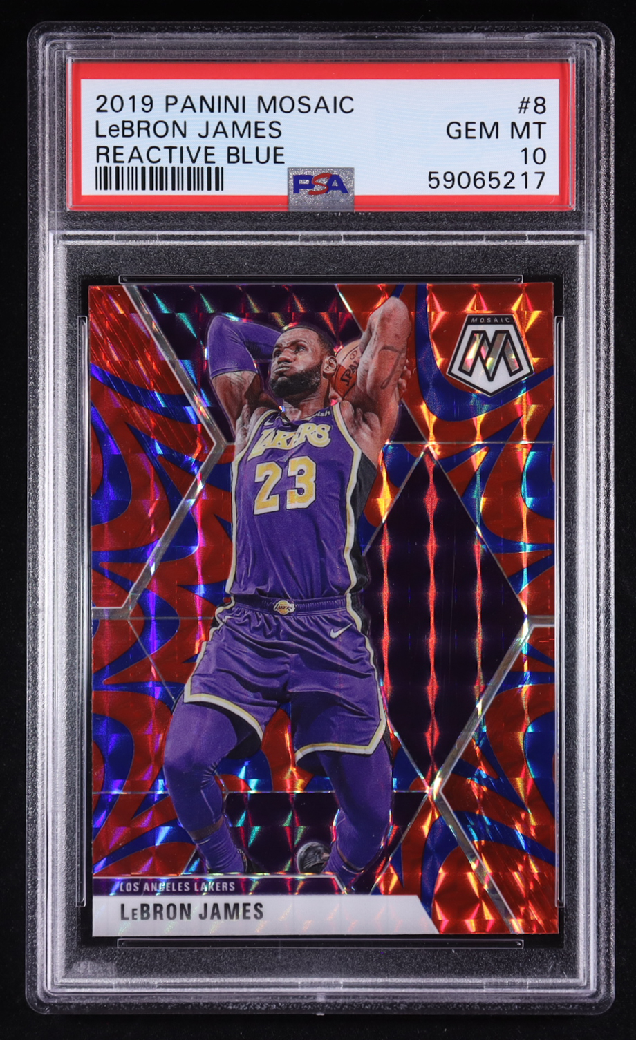 LeBron James 2019-20 Panini Mosaic Mosaic Blue Reactive #8 (PSA 10)