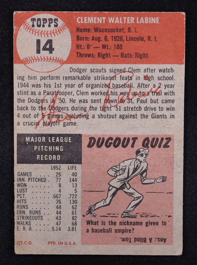 Clem Labine 1953 Topps #14 DP