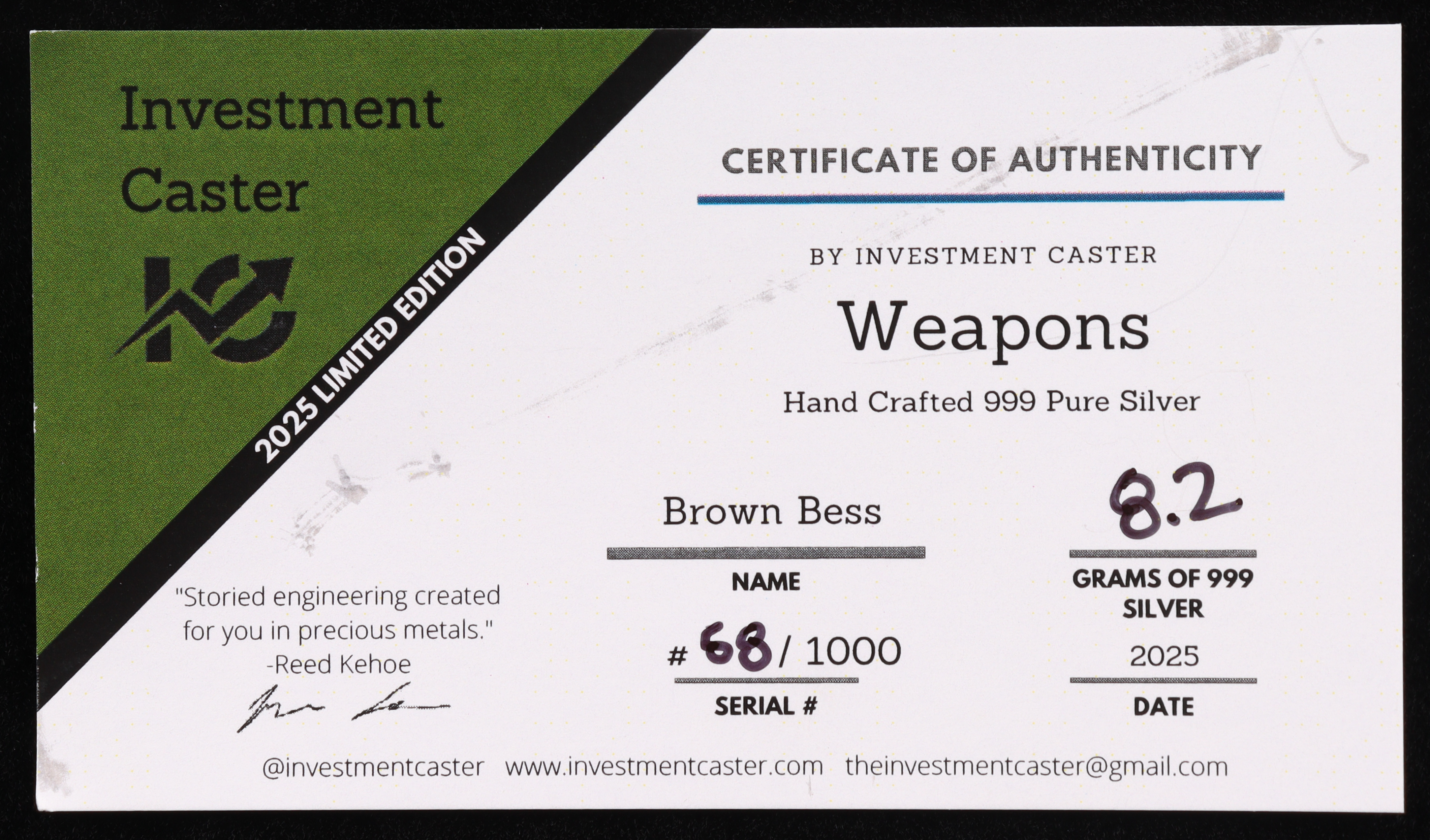 .999 Fine Silver | Serially Numbered #68/1000