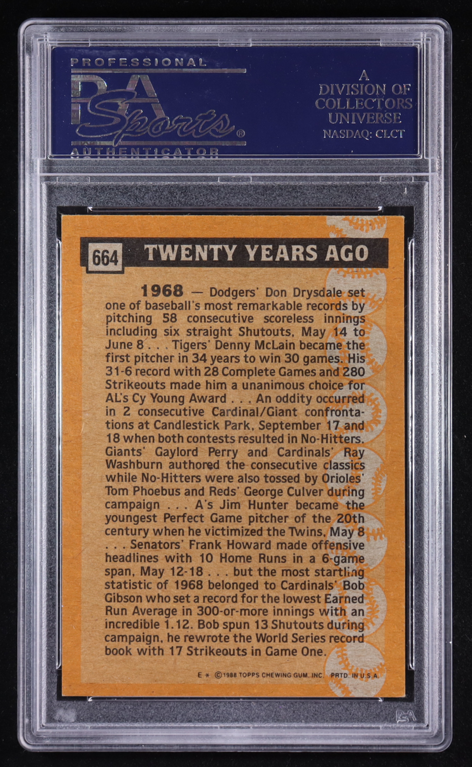 Bob Gibson Signed 1988 Topps #664 TBC '68 (PSA | Autograph Graded Authentic)