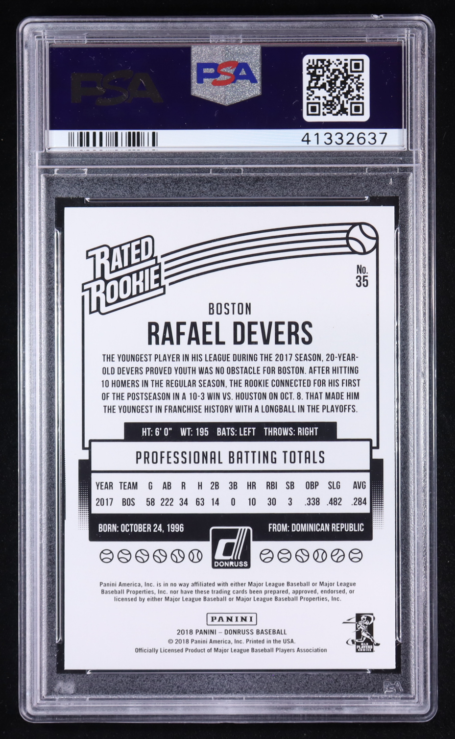 Rafael Devers 2018 Donruss #35 RR RC (PSA 10)