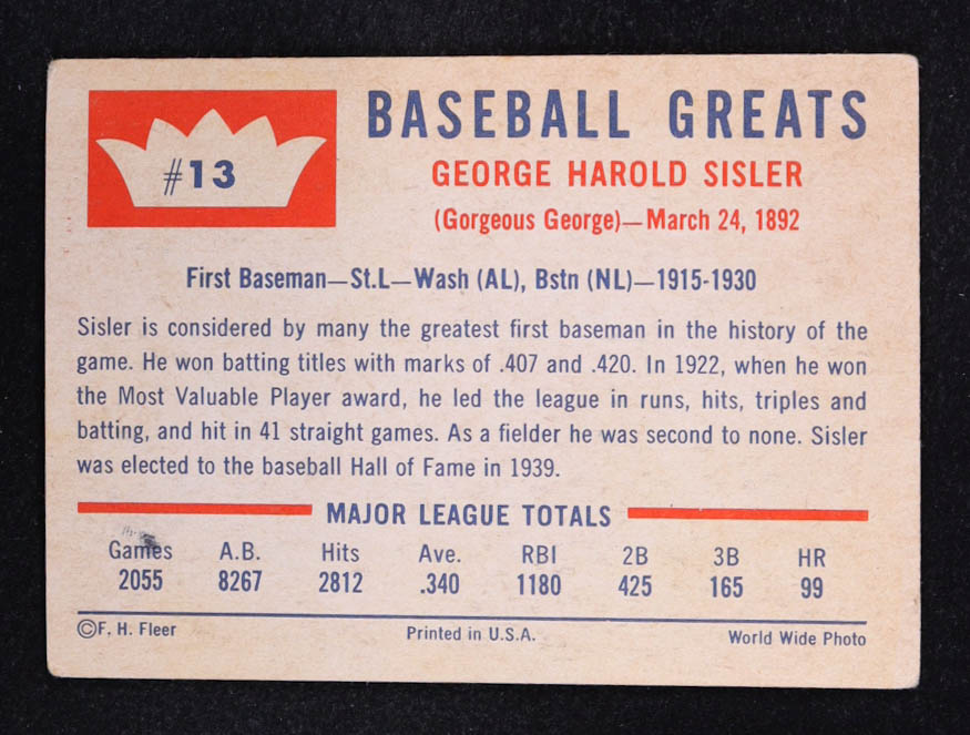 George Sisler 1960 Fleer #13