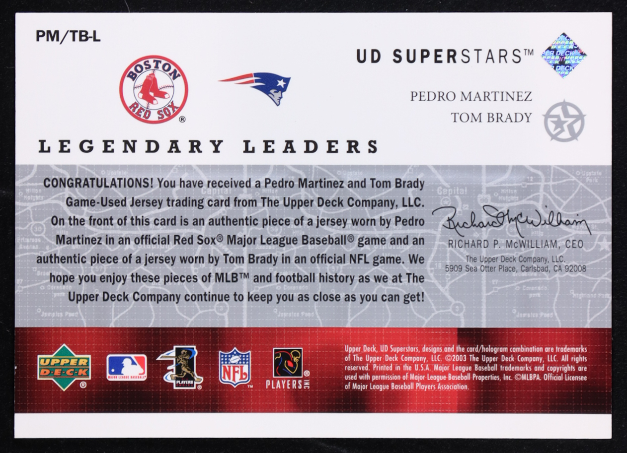 Pedro Martinez / Tom Brady 2002-03 UD SuperStars Legendary Leaders Dual Jersey #PMTB