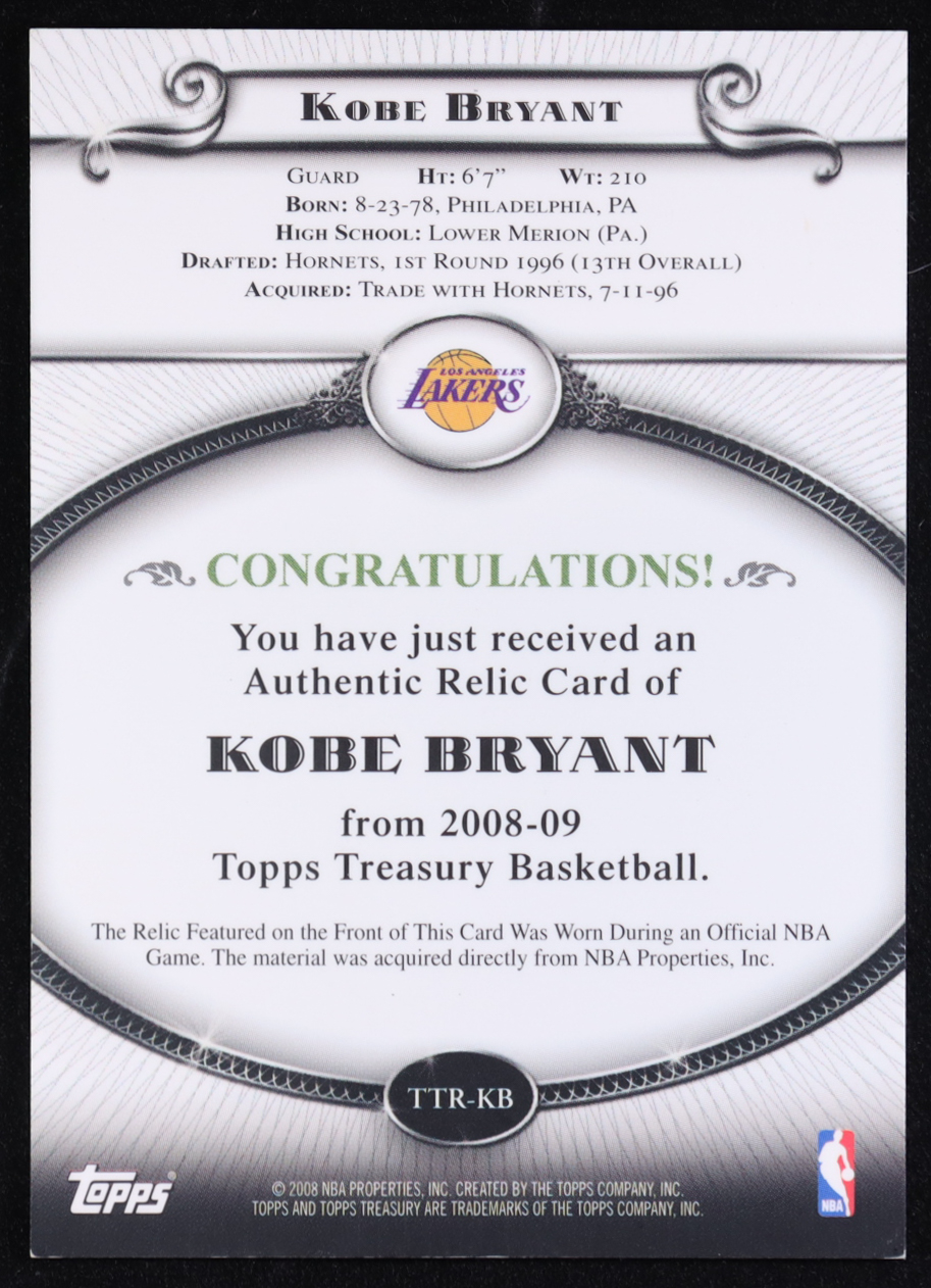 Kobe Bryant 2008-09 Topps Treasury Relics #KB