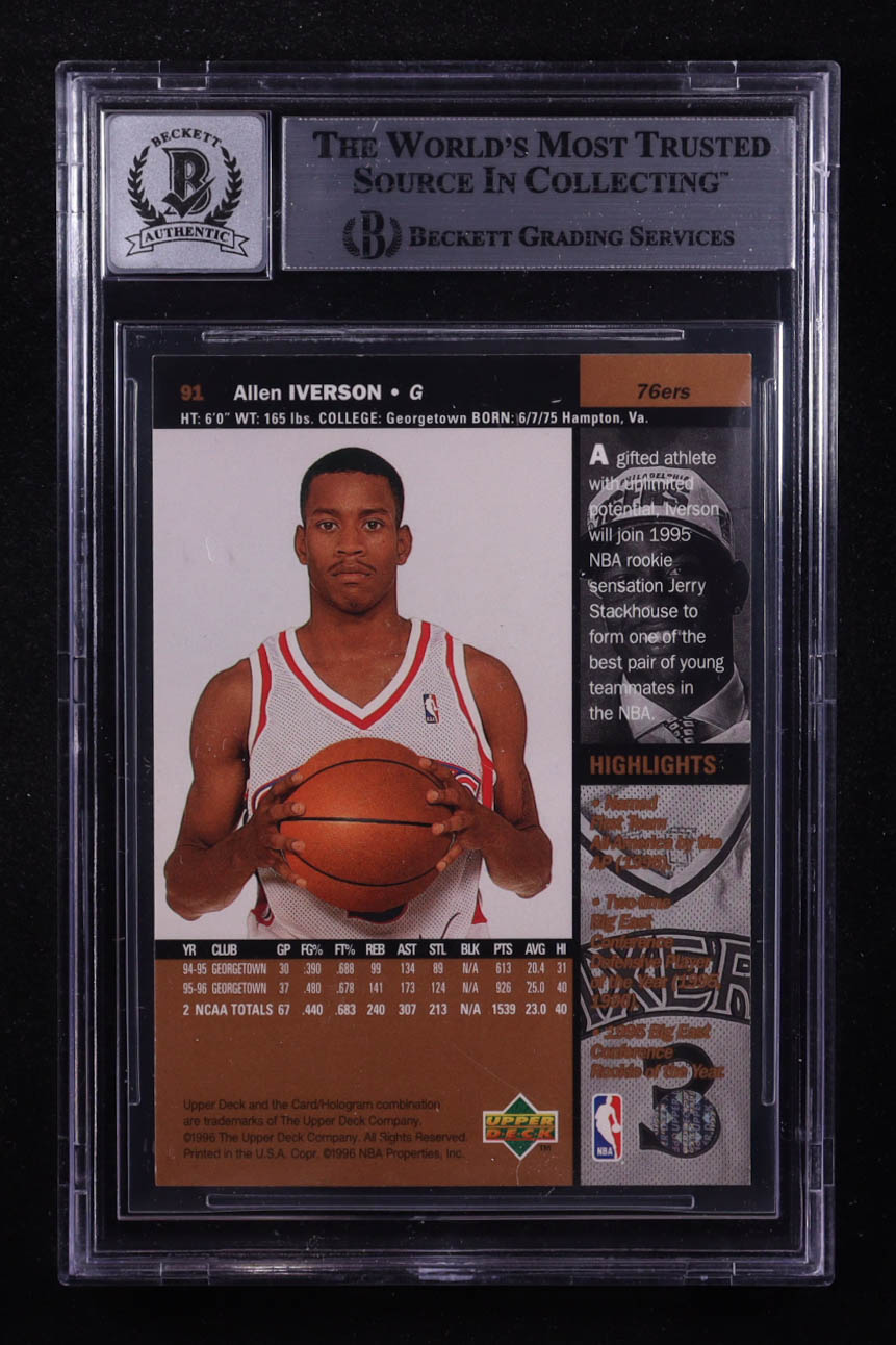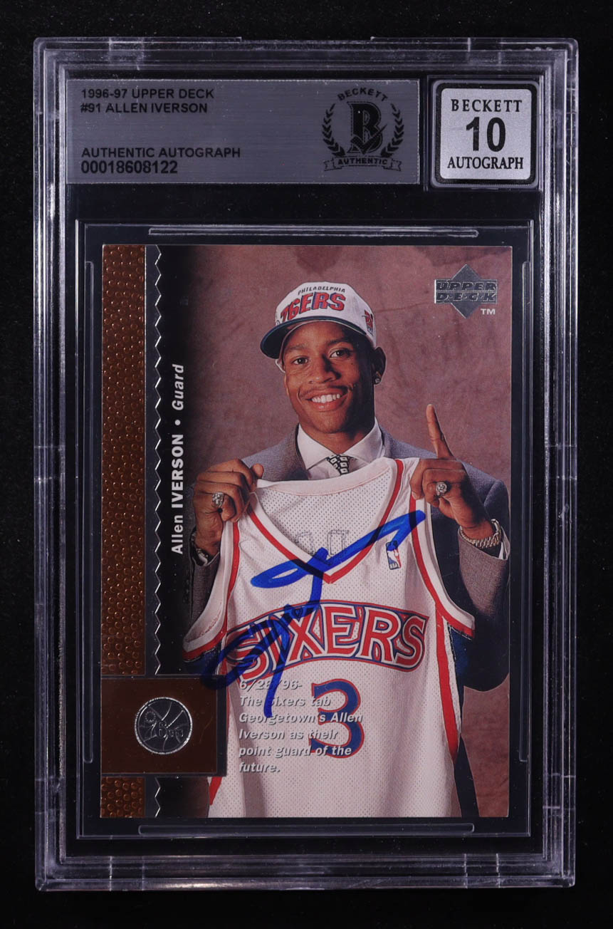 Allen Iverson Signed 1996-97 Upper Deck #91 RC (BGS | Autograph Graded BGS 10)