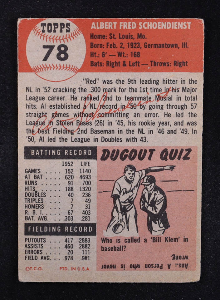 Red Schoendienst 1953 Topps #78