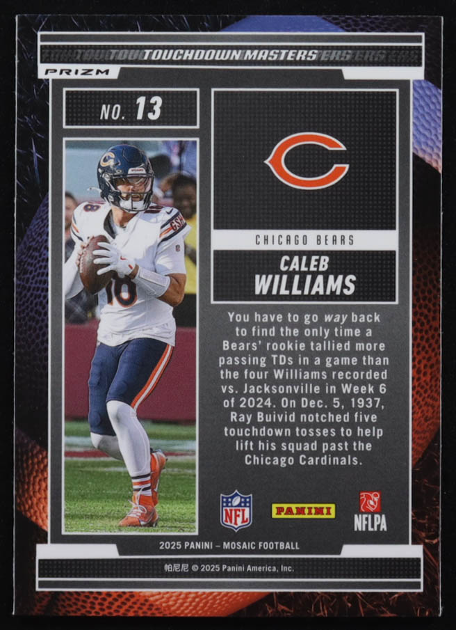Caleb Williams 2025 Panini Mosaic Touchdown Masters Mosaic Orange Fluorescent #13