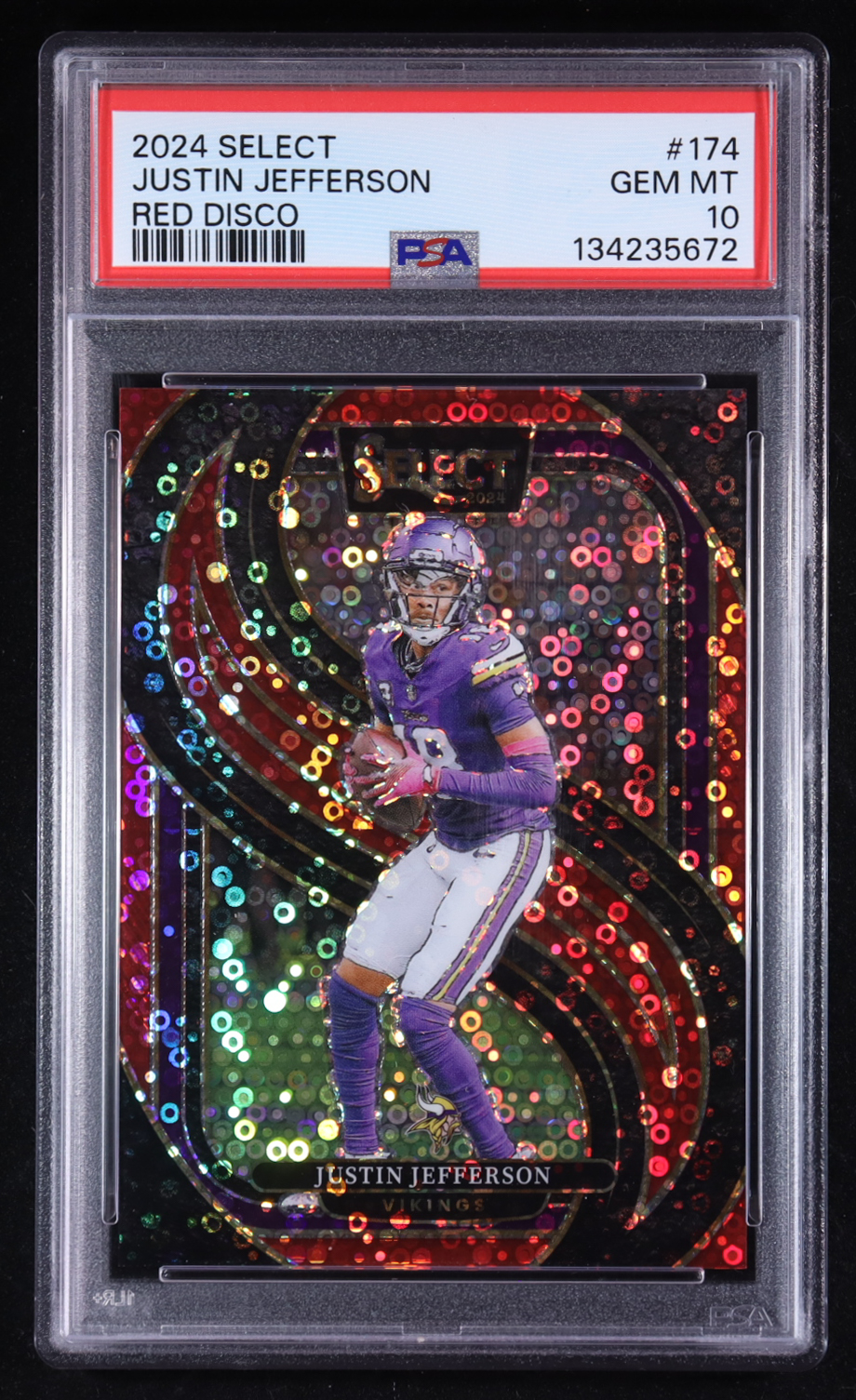 Justin Jefferson 2024 Select Prizm Red Disco #174 #38/49 (PSA 10)