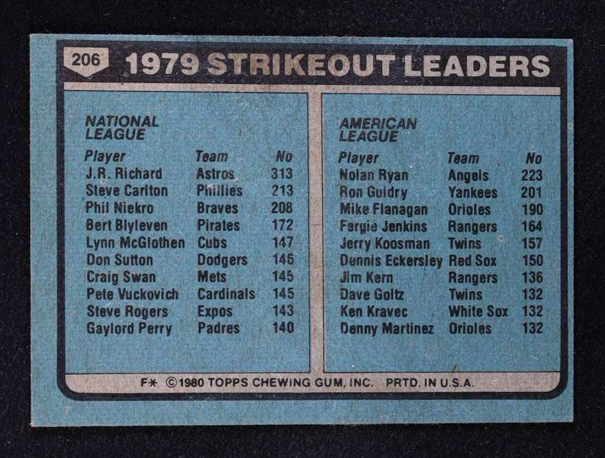 J.R. Richard / Nolan Ryan 1980 Topps #206 Strikeout Leaders