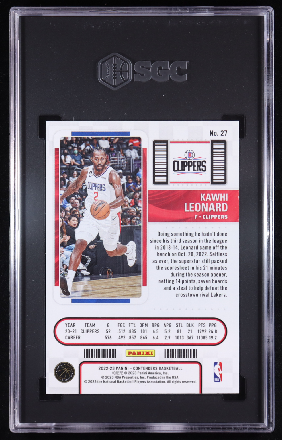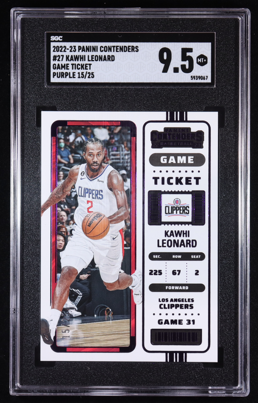 Kawhi Leonard 2022-23 Panini Contenders Game Ticket Purple #27 #15/25 (SGC 9.5)
