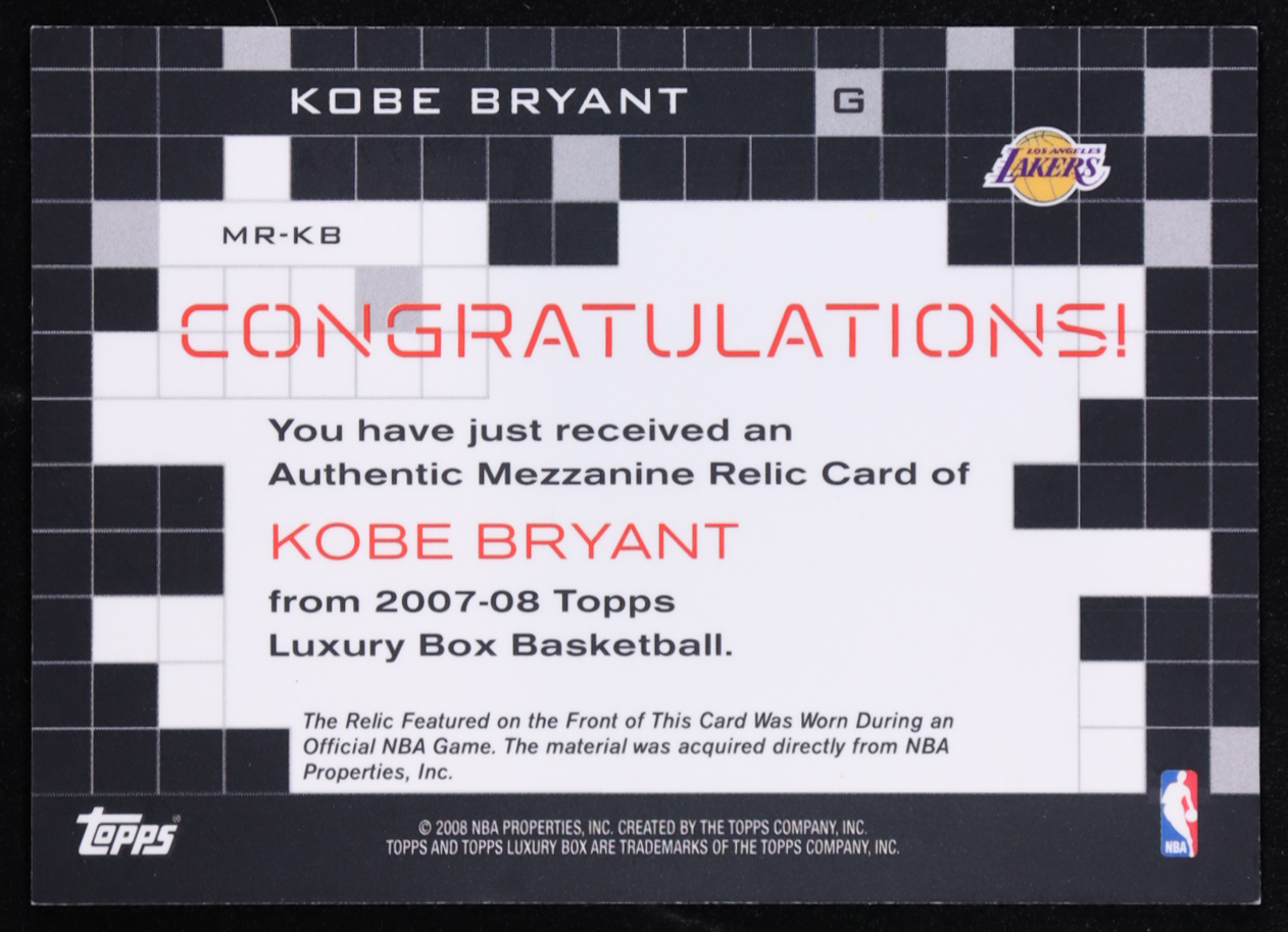Kobe Bryant 2007-08 Topps Luxury Box Mezzanine Relics Gold #KB #48/99
