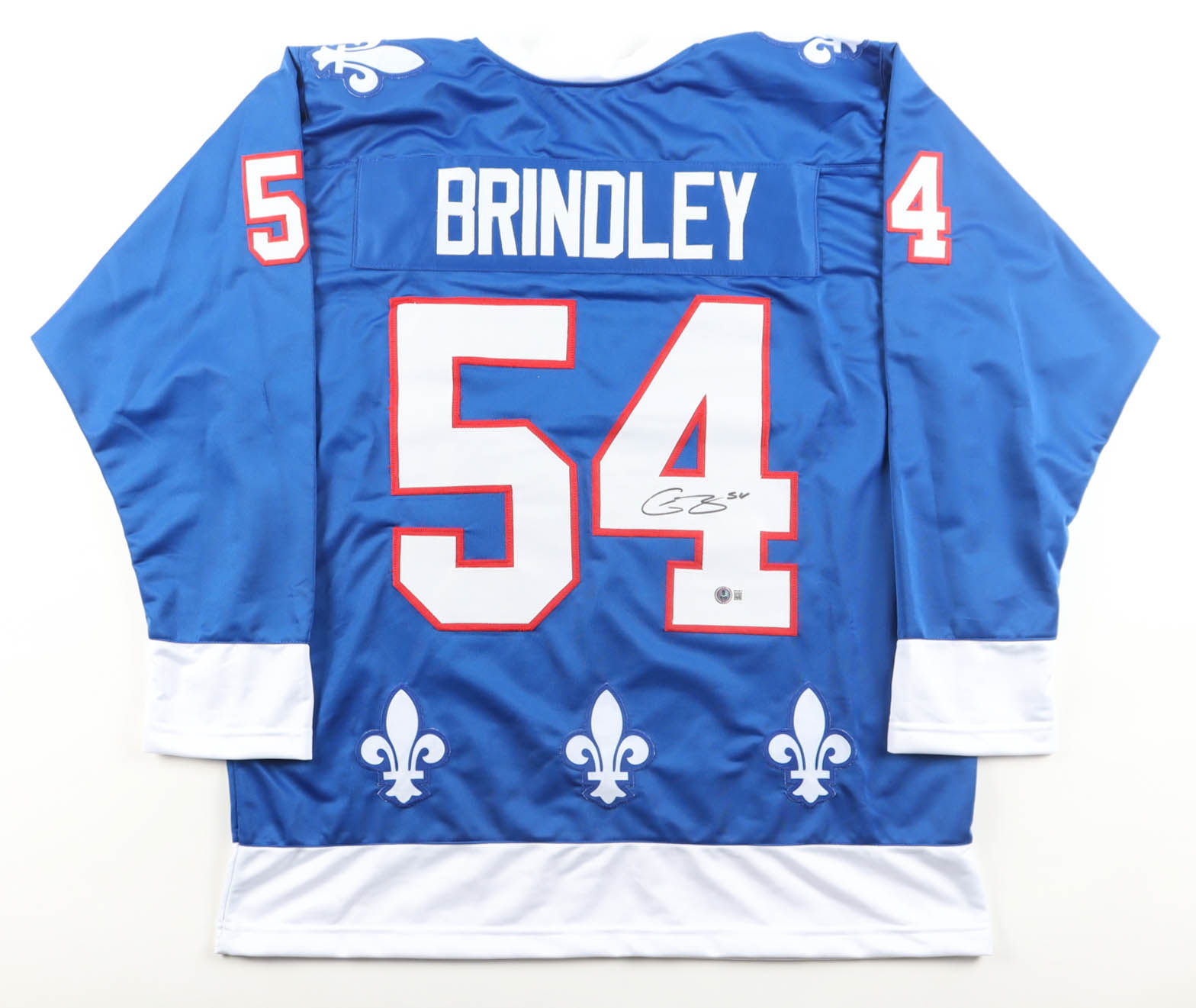 Custom jersey with everything sewn on, size XL. Hand-signed by Gavin Brindley.