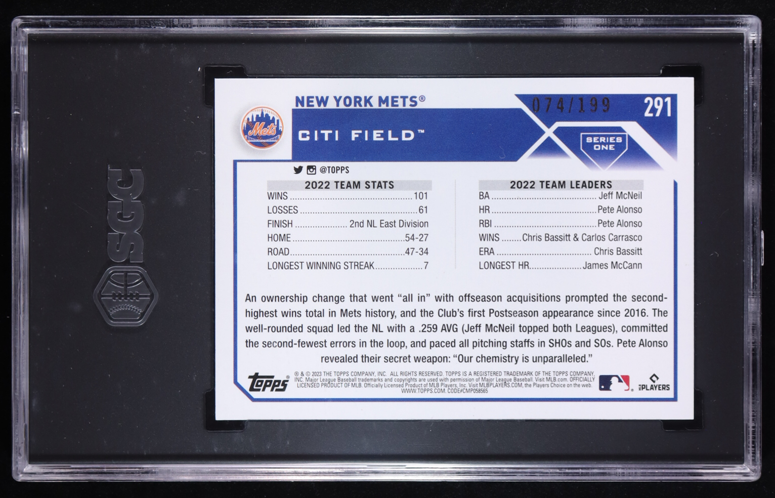 New York Mets 2023 Topps Red Foil #291 #074/199 (SGC 10)