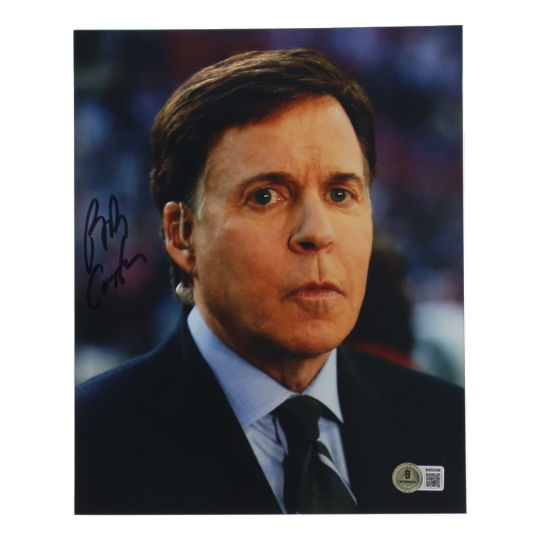 Photo measures 8" x 10" in size and has been hand-signed by Bob Costas.