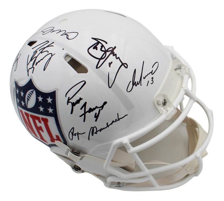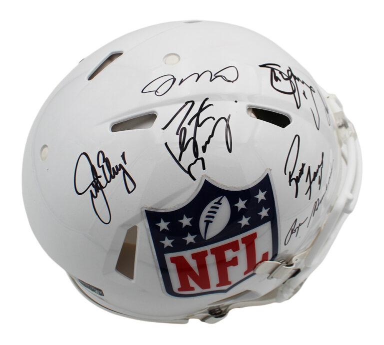 Riddell NFL Shield Logo full-size authentic on-field speed helmet has been hand-signed by (7) NFL Hall of Fame Quarterbacks! Signers include: