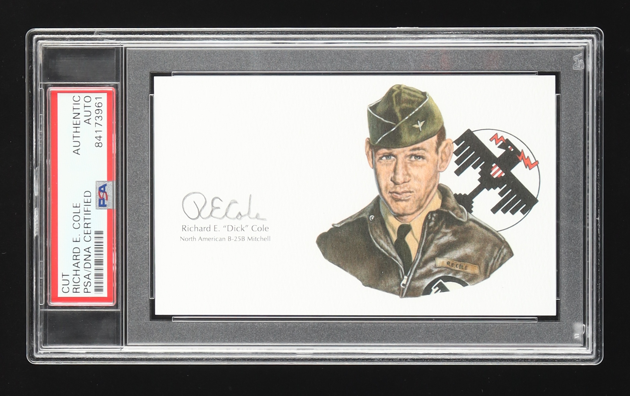Witness the spirit of courage and valor embodied in this exclusive offering: a signed cut signature of the legendary Doolittle Raider, Richard E. Cole, authenticated and encapsulated by PSA/DNA.
