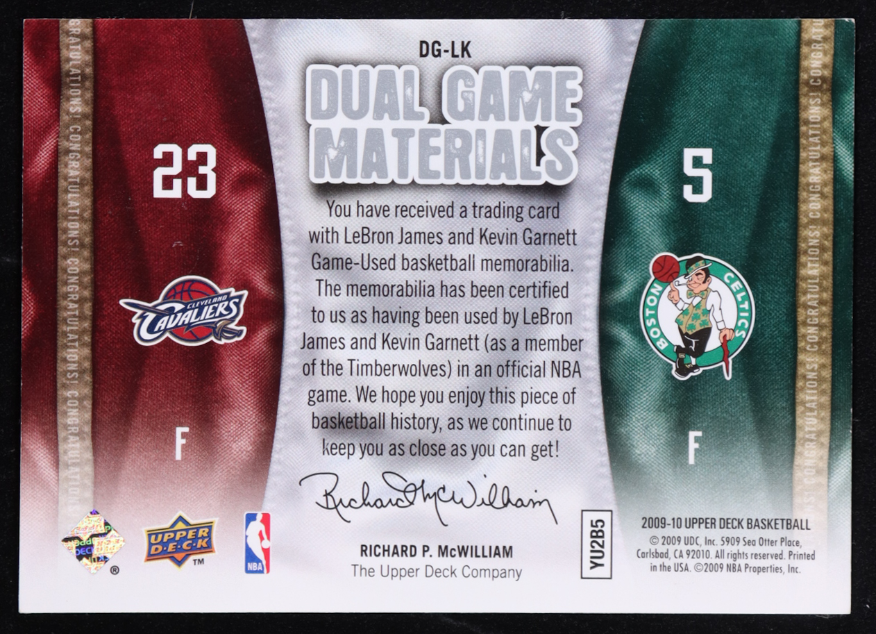 Kevin Garnett / LeBron James 2009-10 Upper Deck Game Materials Dual #DGLK