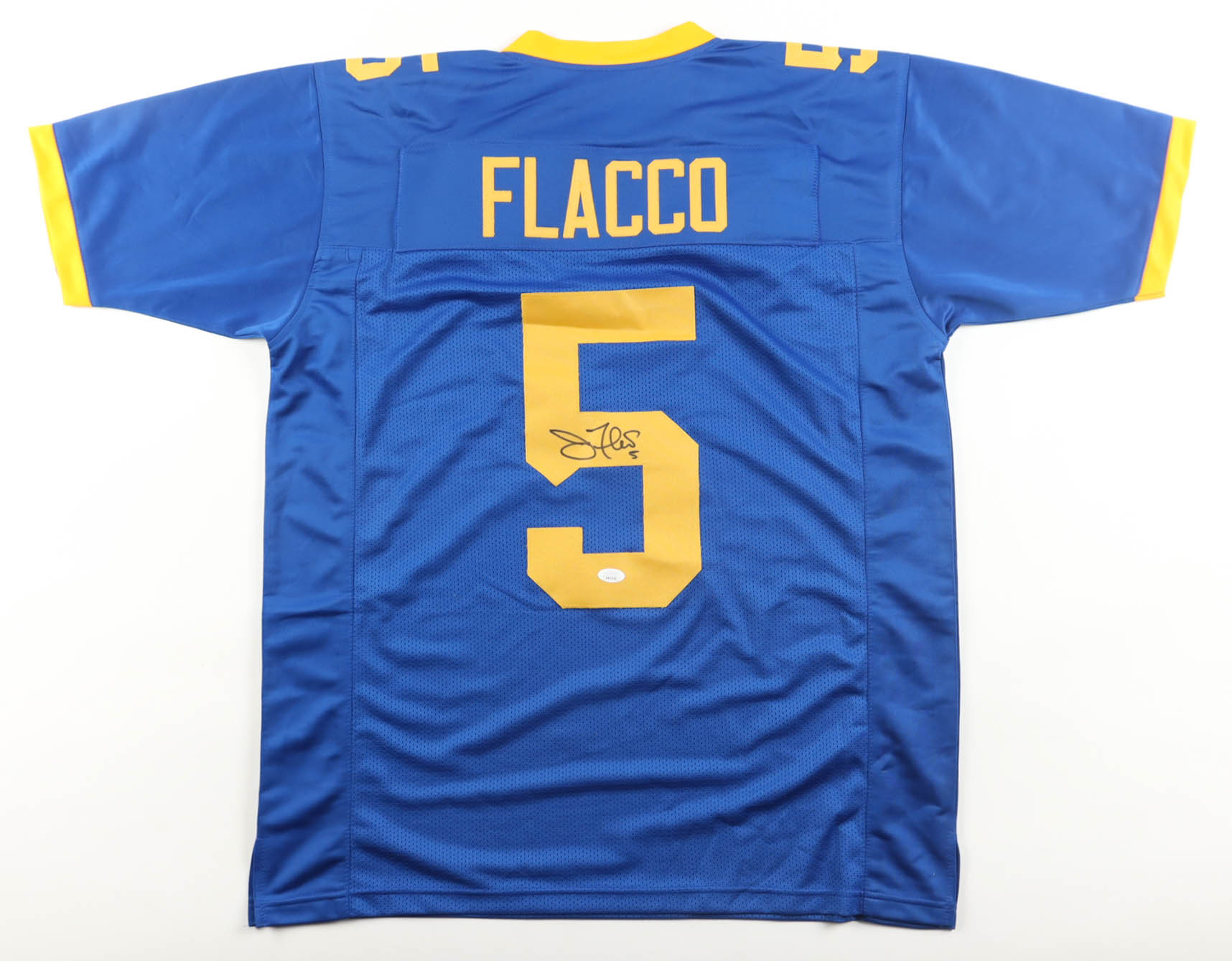 Custom jersey with everything sewn on, size XL. Hand-signed by Joe Flacco. Please note, glue is visible through the reverse number.